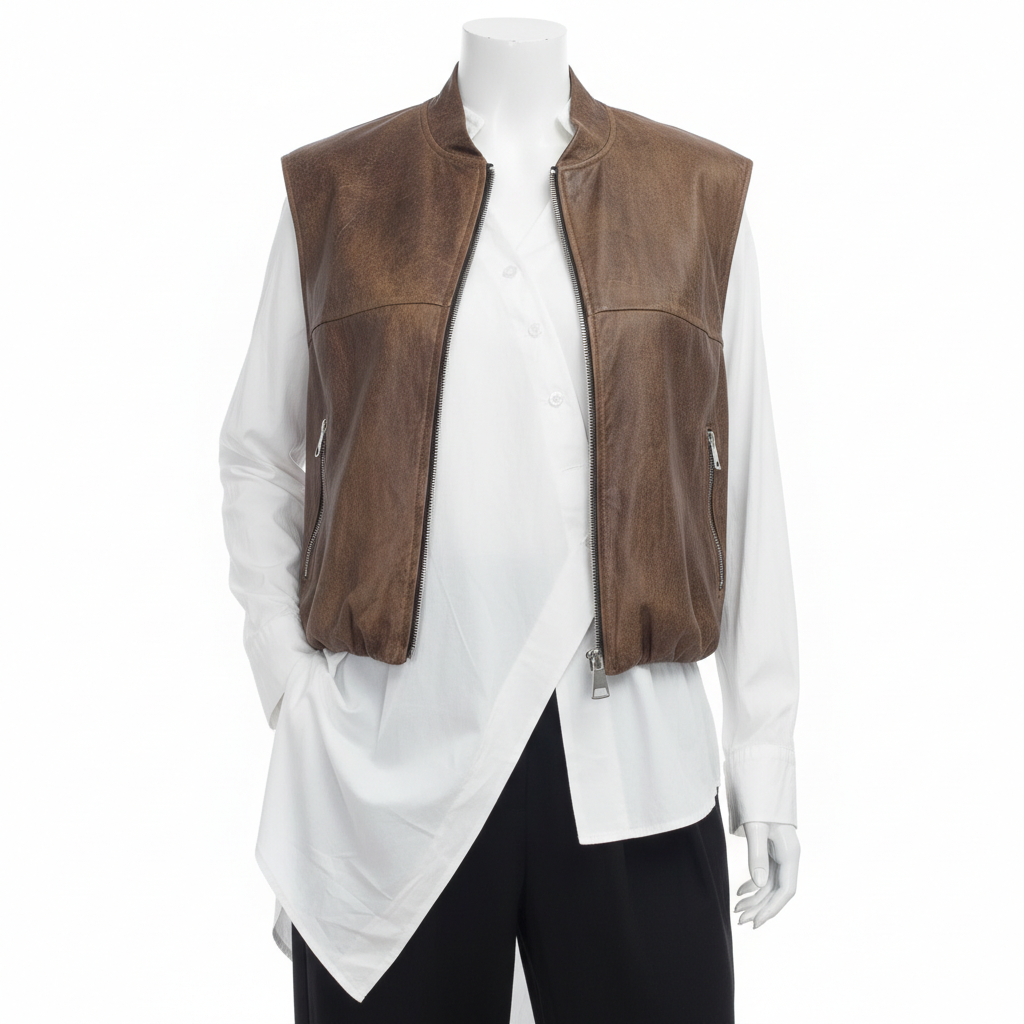 Vestă cu fermoar și efect de piele întoarsă
